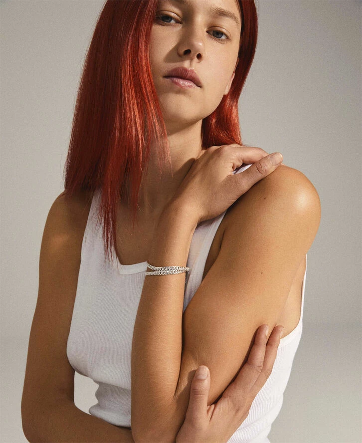 Ny 🔥 Pilgrim BLOSSOM Recycled Curb Chain Armbånd 2-i-1 Sølvbelagt 🔔