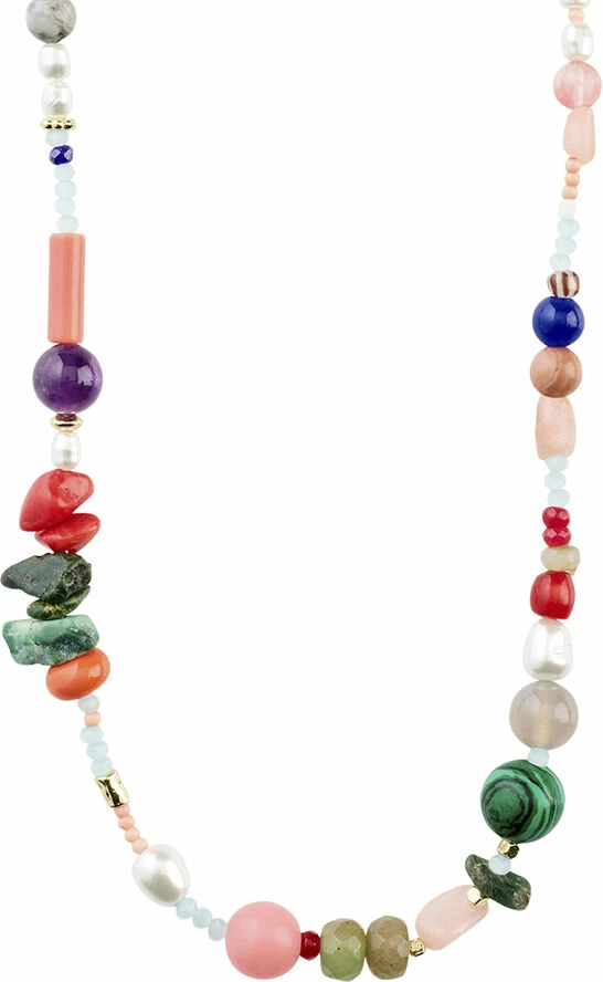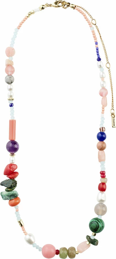 The journey awaits you! Lad kreativiteten råde med den multifarvede halskæde fra Pilgrims FREEDOM-kollektion. Et unikt mix af ferskvandsperler og colourful halvædelsten skaber et ægte luksus-piece med en free-minded personal feel. Lad de irregulære shapes give dine everyday looks et playful tvist. Halskæden måler 38 cm + 9 cm forlængerkæde.