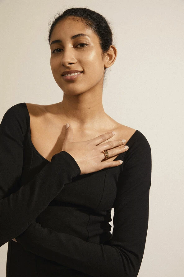 Friendship is the key! Den guldbelagte ring fra Pilgrims Friends-kollektion dyrker det simple design og kombinerer kantede former med shiny finish. Et stilrent unisex udtryk med en chunky feel, som giver ringen en urban coolness. Et piece med et minimalistisk look, der gør ringen til det perfekte accessory til vinterens cozy styles.