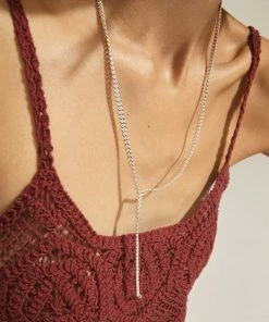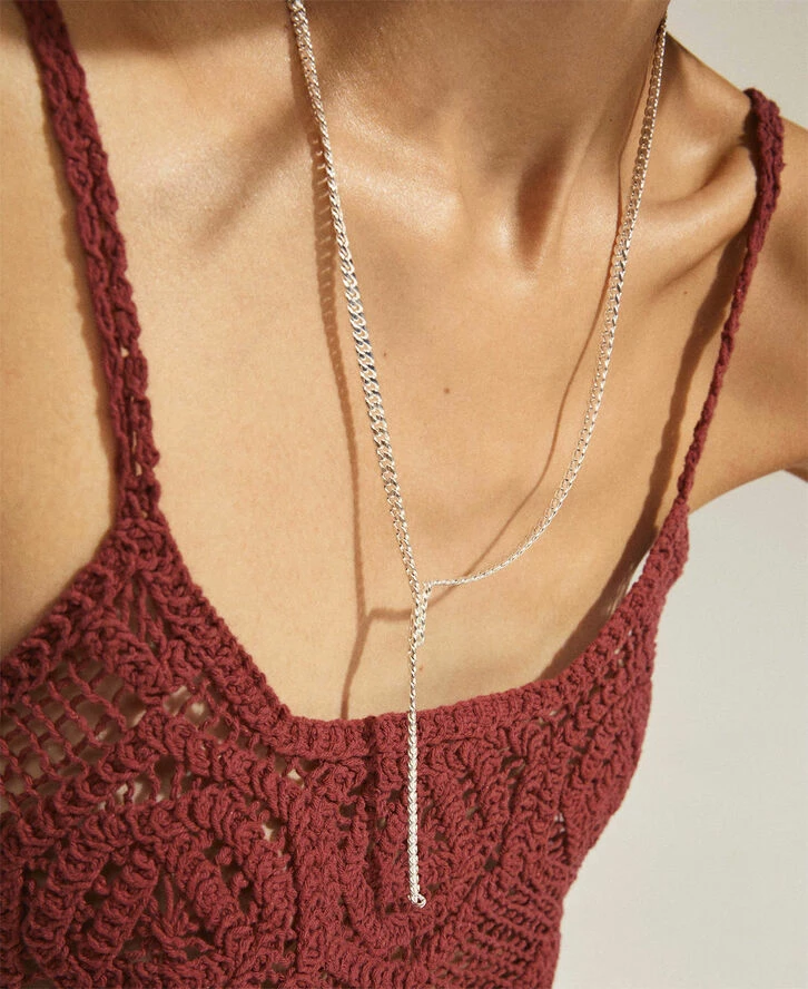 Simply elegant! Pilgrim har givet et klassisk design et nyt twist med den sølvbelagte Y-halskæde fra Courageous-kollektionen. Den enkle halskædes Y-silhuet udstråler en tidløs og klassisk, feminin vibe, samtidig med at kædens curb-struktur giver et modern urban-strejf. Style halskæden med et par krystal-studs for et feminint forårslook. Halskæden måler 55 + 8 cm forlængerkæde.
