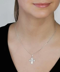 Dagmarkorset regnes for at være et af Danmarks største nationalklenodier, og er det tætteste man kommer på et nationalsmykke. Det oprindelige Dagmarkors er dateret til 1000-tallet, og blev fundet ved dronning Dagmar’s grav. I Danmark er der tradition for at give Dagmarkorset i barnedåbsgave eller konfirmationsgave, – det smukke symbol kan bruges i alle sammenhænge, også som en del af et moderigtigt lag-på-lag look, hvor det kombineres med andre af Pilgrims halskæder. Pilgrims smukke og klassiske Dagmarkors er sølvbelagt og hænger fra en fin sølvbelagt kæde, der er 38 cm lang og har 9 cm forlængerkæde.