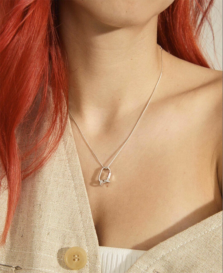 Gå all in, og lad dig inspirere af den sølvbelagte halskædes unikke mini-karabin-vedhæng. Karabin-låsen holder på to cirkler med shiny Preciosa-krystaller og skaber tilsammen en kombi af urban trendiness og feminin energy. Halskæden måler 40 + 9 cm forlængerkæde og passer perfekt til forårets lyse og luftige outfits.