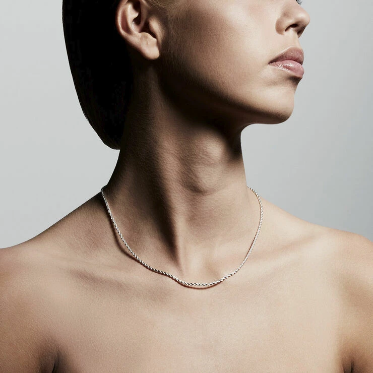 Mix og match-trenden er her for at blive. Med den sølvbelagte halskæde får du et perfekt basic item, der kan bruges til en layering-effekt med flere kæder. De snoede detaljer giver halskæden kant og gør den unik. Kæden måler 40 + 9 cm.