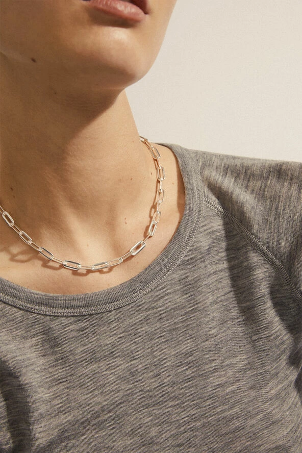 Kindness is never wasted! Den sølvbelagte halskæde fra Pilgrims Kindness-kollektion er lavet af 75 % genanvendt materiale. Cable chain-designet giver et airy feel til det industrielle look, der understreges af kædens dekorative karabinlås. Shiny finish giver et feminint touch til de rå features. Kæden måler 50 cm og er vinterens must-have piece til et gennemført urban look.