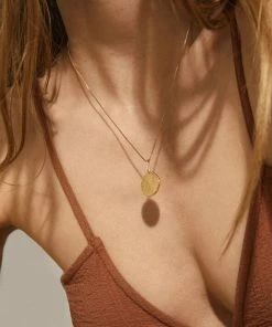 Let your love shine med den guldbelagte coin-halskæde fra Pilgrims LOVE-kollektion. Et luftigt piece bestående af box chain med eye catching coin-amulet i nordisk, stilrent design. Vedhængets simple bølgemønster giver et organisk og wavy look med en shiny finish, der fanger lyset og stråler til verden omkring dig. Halskæden måler 40 cm + 9 cm forlængerkæde.