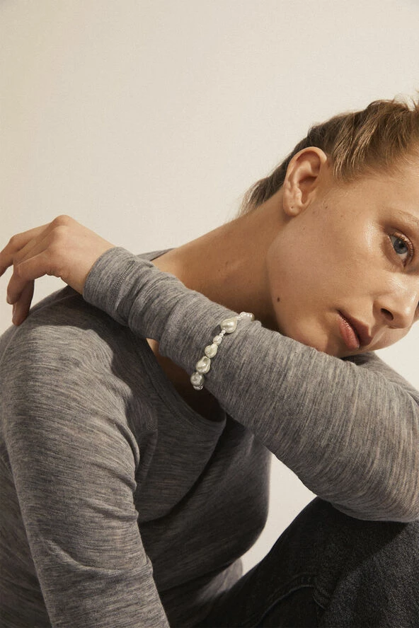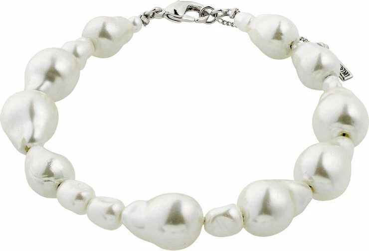 Stay true to yourself! Find din indre viljestyrke frem med det sølvbelagte perlearmbånd fra Pilgrims Willpower-kollektion. Armbåndets irregulære perledetaljer symboliserer naturens uforudsigelige shapes, og perlernes klare hvide farve giver en feminin lethed til armbåndets organiske design. Dyrk et organisk vinterlook med en matchende halskæde og natural-inspired øreringe.