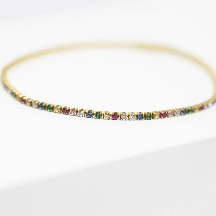 Ellera-kollektionen fra Sif Jakobs Jewellery er sparklende og enkel og står for elegance og glam til overkommelige priser. Armbånd i sterlingsølv 925 forgyldt med 18 karat guld med blankpoleret overflade og facetslebne multifarvede zirkoner. <br>Armbåndets mål: Kæde længde inkl. lås 19 cm