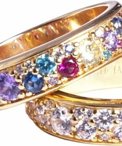 Ring i sterlingsølv 925 forgyldt med 18 karat guld med blankpoleret overflade og facetslebne multifarvede zirkoner.<br>Ringens mål: Diameter 6 mm<br><br>Guide til at finde din ringstørrelse:<br><br>Der findes flere forskellige metoder til at måle sin ringstørrelse på. Vi anbefaler følgende tre måder. <br><br>Prøv eventuelt flere af metoderne og sammenhold resultaterne for at undgå fejl.<br><br>1. Mål den indvendige omkreds af din ring med et målebånd. Hvis omkredsen er 56mm svarer det til en størrelse 56.<br><br>2. Tag et stykke tråd og bind det løst rundt om den finger du ønsker at opmåle. Derefter måler du længden af snoren, hvilket svarer til din størrelse. Hvis snoren eksempelvis er 56 mm lang, vil dette svare til en størrelse 56.<br><br>3. Gå til en guldsmed og få opmålt din størrelse.