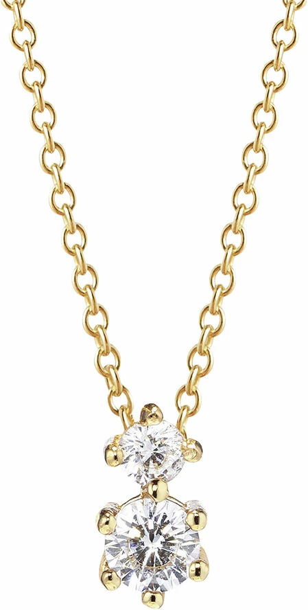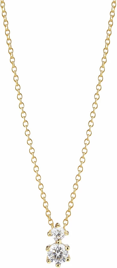 Sif Jakobs Jewellery Rimini-kollektionen præsenterer smukt sarte, klassiske pieces med farver og spændende sparklende cubic zirconia-former. Rimini er den perfekte balance mellem nye klassikere og lige på trend pieces. Halskæde i sterlingsølv 925 forgyldt med 18 karat guld med blankpoleret overflade og facetslebne 2,3 mm og 3,3 mm hvide zirkoner.<br>Vedhængets mål: Længde 7,4 mm, Bredde 4 mm, Tykkelse 3,2 mm, Kædelængde 42 cm + 4 cm