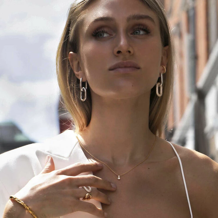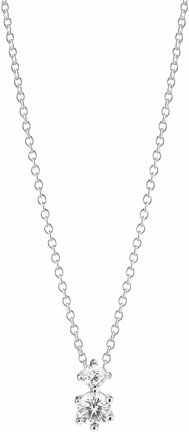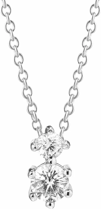 Sif Jakobs Jewellery Rimini-kollektionen præsenterer smukt sarte, klassiske pieces med farver og spændende sparklende cubic zirconia-former. Rimini er den perfekte balance mellem nye klassikere og lige på trend pieces. Halskæde i rhodineret sterlingsølv 925 med blankpoleret overflade og facetslebne 2,3 mm og 3,3 mm hvide zirkoner.<br>Vedhængets mål: Længde 7,4 mm, Bredde 4 mm, Tykkelse 3,2 mm, Kædelængde 42 cm + 4 cm