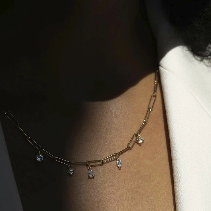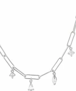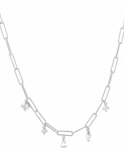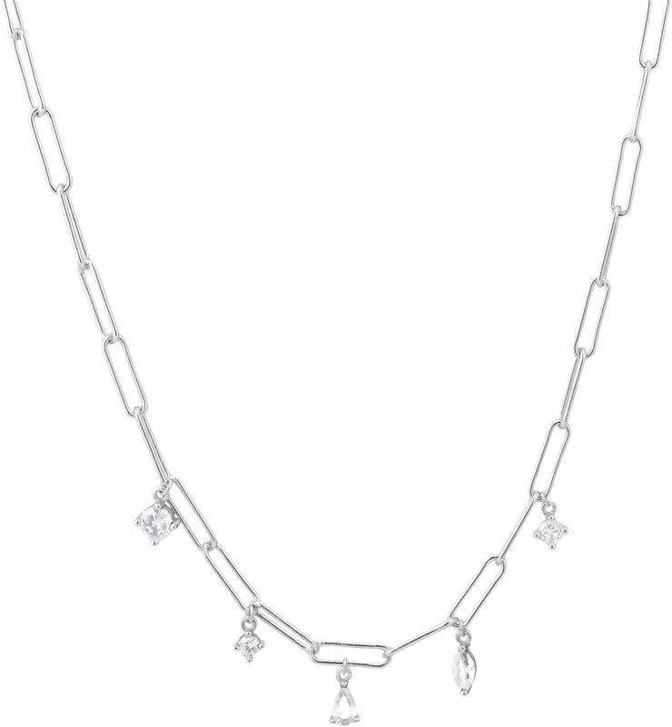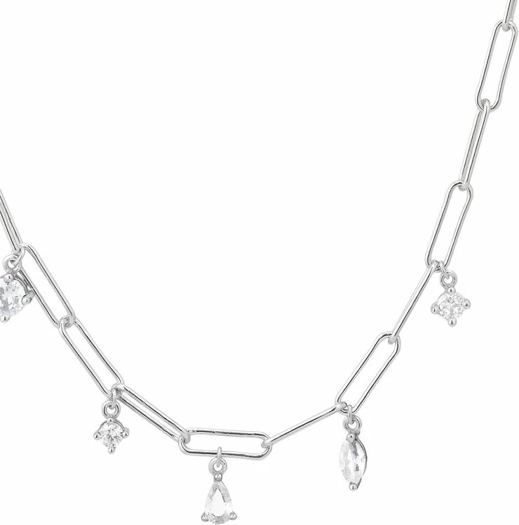 Sif Jakobs Jewellery Rimini-kollektionen præsenterer smukt sarte, klassiske pieces med farver og spændende sparklende cubic zirconia-former. Rimini er den perfekte balance mellem nye klassikere og lige på trend pieces. Halskæde i rhodineret sterlingsølv 925 med blankpoleret overflade. Dekoreret og håndsat med hvid dråbe, marquise og runde zirkoner.<br>Kæde mål: Bredde 3,5 mm, Tykkelse 0,85 mm, Længde 45 cm